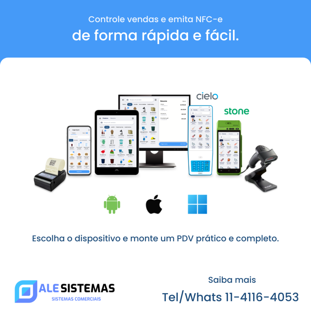 O PDV MULT funciona perfeitamente em tablets, smartphones e pode ser conectado a impressora e leitor de códigos