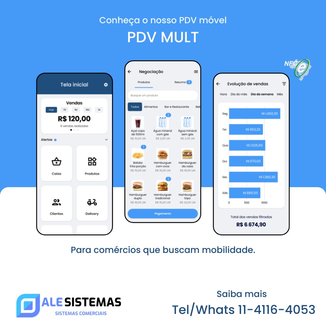 O PDV MULT funciona perfeitamente em tablets, smartphones e pode ser conectado a impressora e leitor de códigos